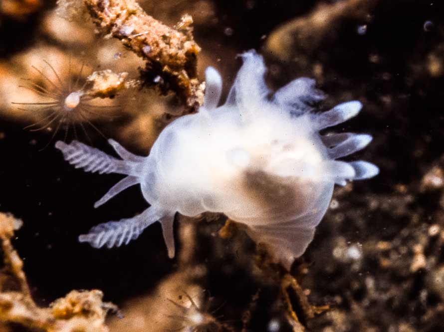 At 15 metres in 12° C water, an 18mm long white pigmented individual