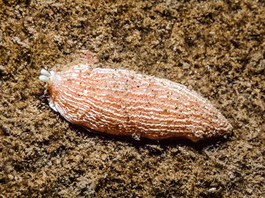 Found crawling across the silt covered sloping rock surface at 24 metres,