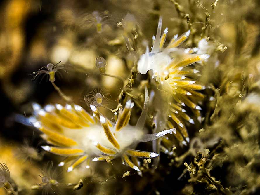 25 mm specimens on hydroid at 19 metres. Several seen with
