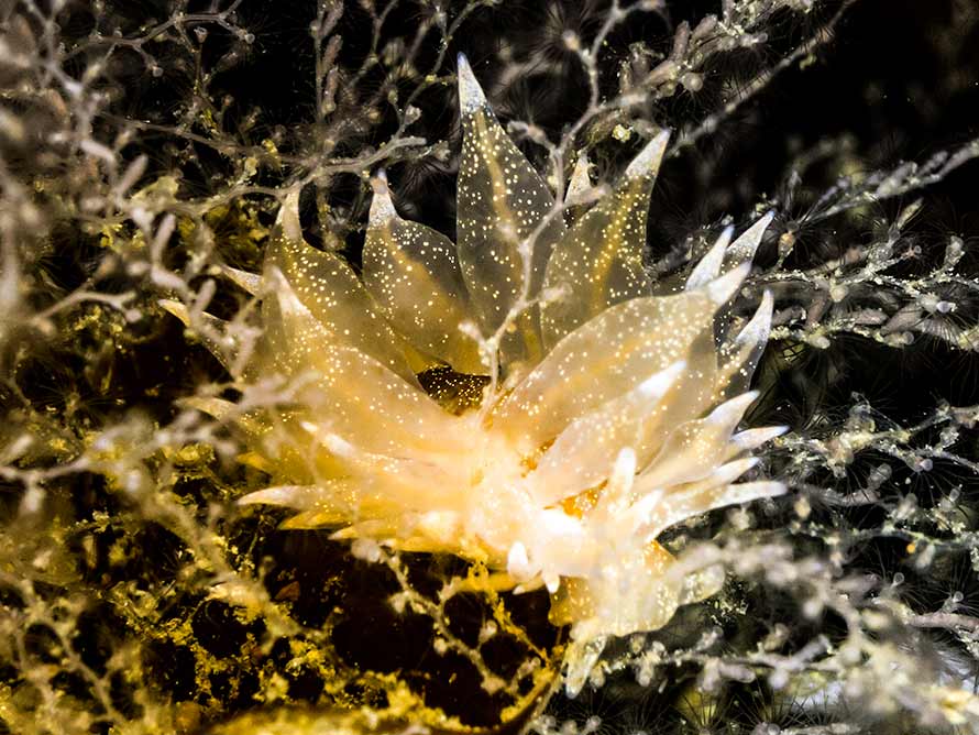 Eubranchus linensis Garcia-Gomez, Cervera & Garcia, 1990 21 October, 2015. Cava Island, Scapa Flow in the Orkney Islands. 18 mm animal at 15 metres. Water temperature 11°C. Sony ?6000 in Nauticam housing, Zeiss 50 mm macro lens and 2 x Inon D-2000 flashes. |