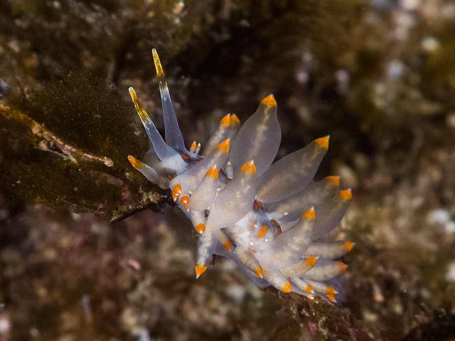 A 28 mm animal, one of many, at 12 m. Water temperature 10.5°C.