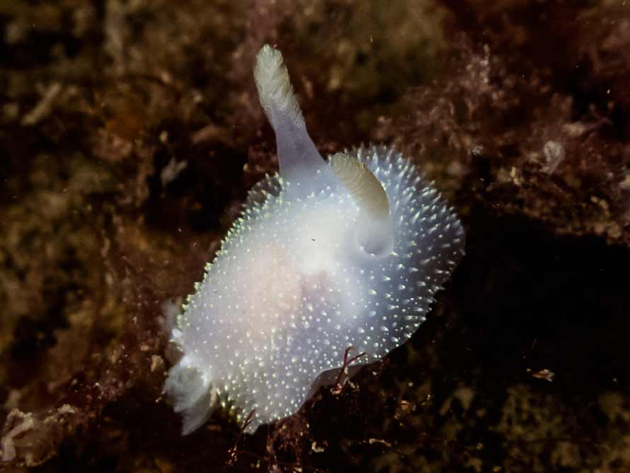 Acanthodoris pilosa (Abildgaard in Müller, 1789)16 May, 2010.1.5 Metre reef , The Garvellachs on the west coast. A 32 mm animal at 12 metres. Water temperature 9°C. Fuji E900 in Ikelite housing, Inon CU lens and 2 x Inon D-2000 flashes. | |||