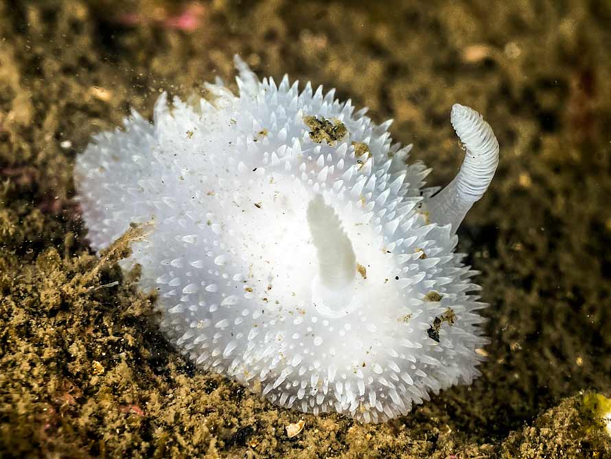 Acanthodoris pilosa (Abildgaard in Müller, 1789)31 May, 2013.Lephinchapel, Loch Fyne on the west coast. 30 mm animal at 15 metres in 8.5° C water. Sony NEX-5 in Nauticam housing, 18-55mm lens, SubSee +10 dioptre and 2 x Inon D-2000 flashes. | |||