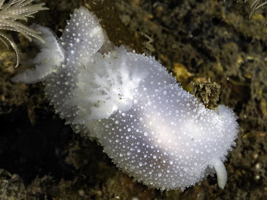 Acanthodoris pilosa (Abildgaard in Müller, 1789)29 April, 2018.Lismore Cliff, Lismore Island on the west coast . 2 x 30 mm animasl at 20 metres Water temperature 7°C. Sony α6000 in Nauticam housing, Zeiss 50 mm macro lens and 2 x Inon D-2000 flashes. | |||