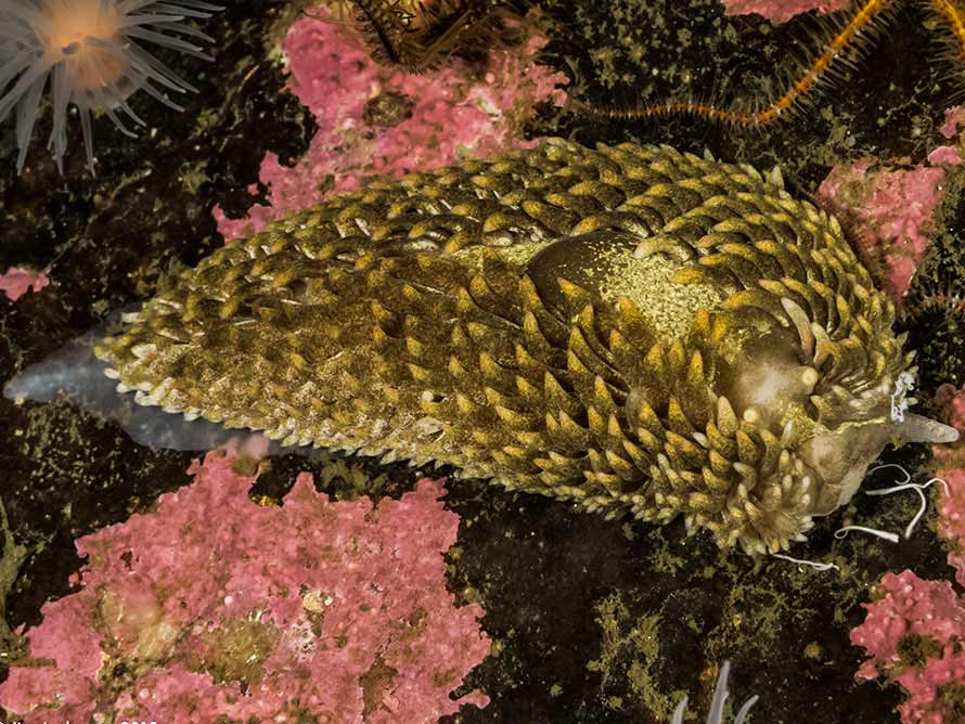 Aeolidia papillosa (Linnaeus, 1761)23 August, 2015.Island Rock, Loch Hourne on the west coast. A 55 mm animal feeding at 16 metres. Water temperature 13.5°C. Sony α6000 in Nauticam housing, Zeiss 50 mm macro lens and 2 x Inon D-2000 flashes. | |||
