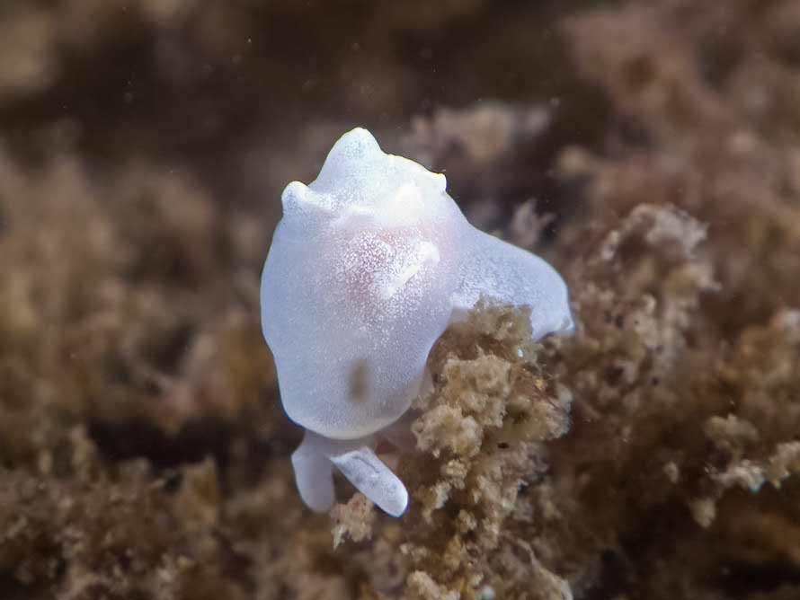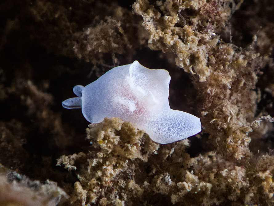 This 5 mm animal, one of two, was found on an algae covered boulder at 18 metres. Water temperature 13°C.