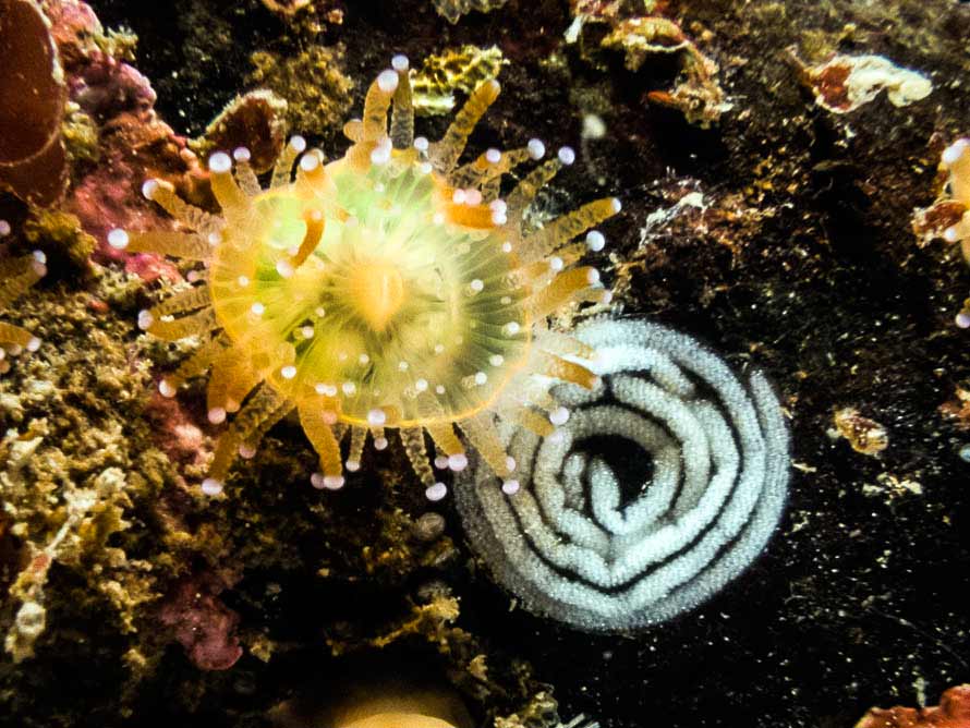This 10 mm dia. spawn spiral was seen near several animals on the reef