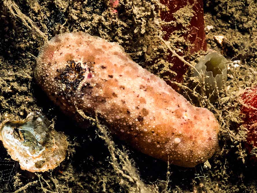 A 50mm long animal on the invert encrusted vertical rock face at 18