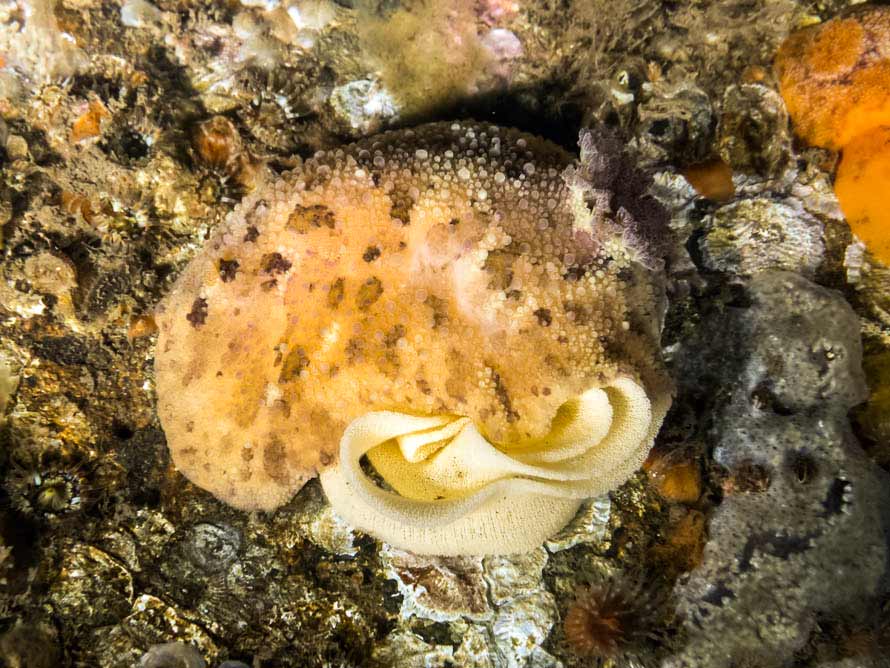 There were many animals individually and in small groups on the pier legs around this depth.