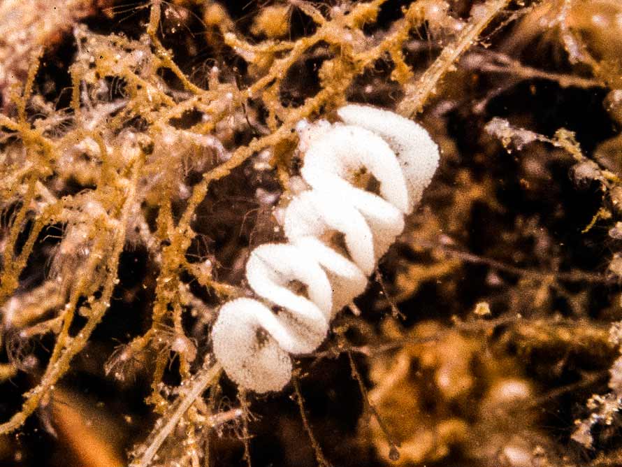 distinctive concertina ribbon of eggs on the stem of the hydroid. There