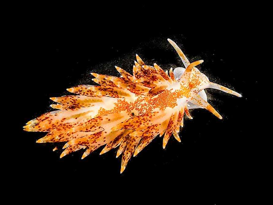 25 mm specimen on hydroid at 16 metres. One of several seen with