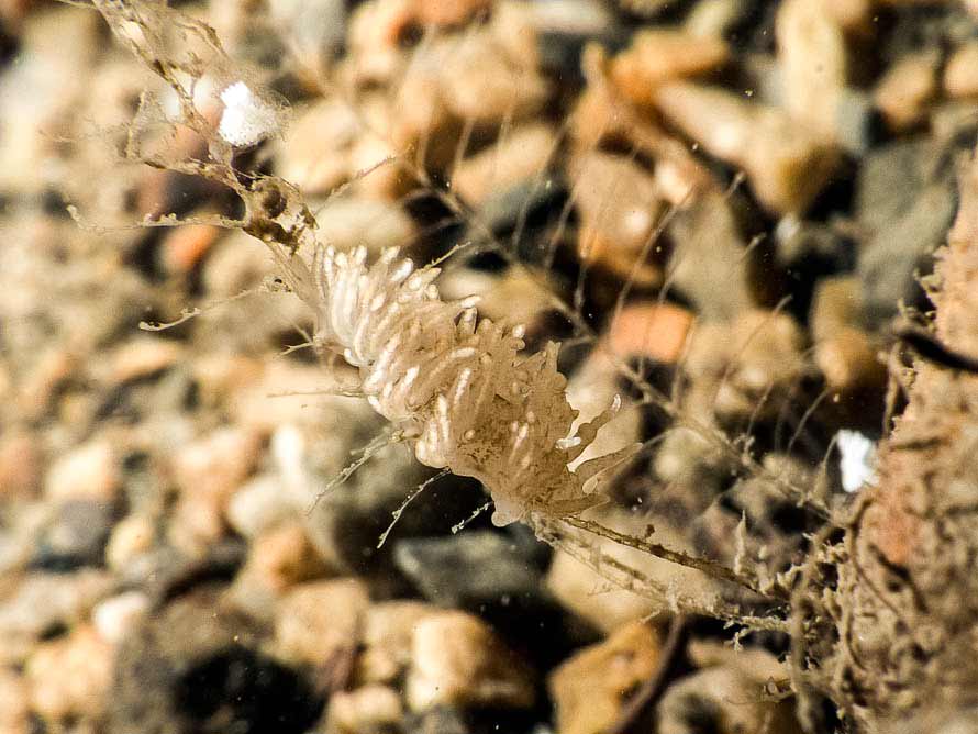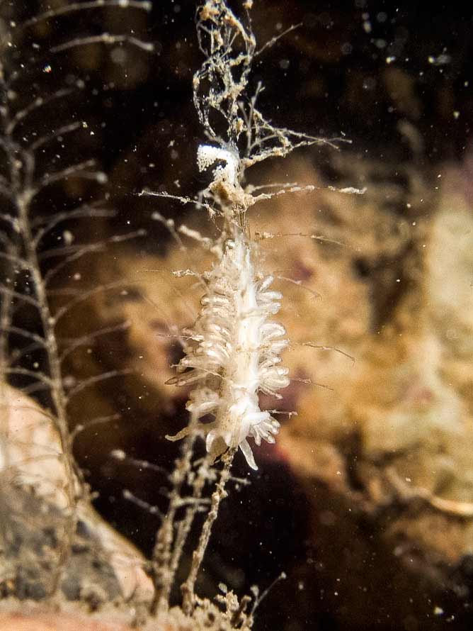 19 mm long pale animal at 12 metres. Water temperature 8° C.