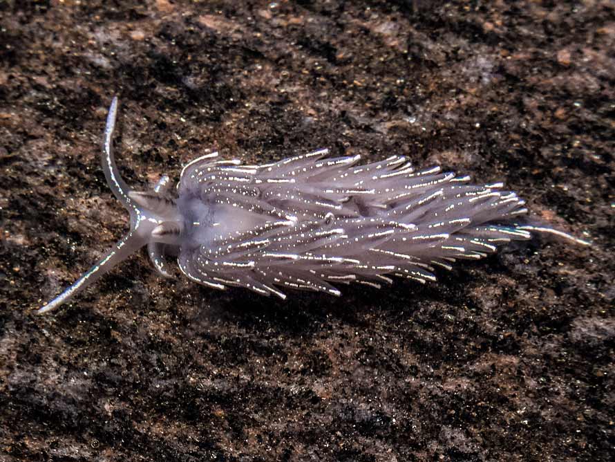 at 20 metres with 2 others feeding on spawn of Acanthodoris pilosa and photographed in the lab later. Water temperature 13°C. See here for the animal in situ.