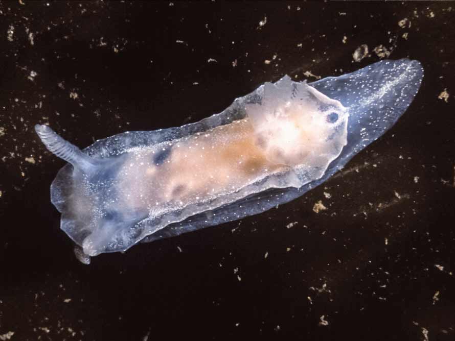 A 20 mm long animal crawling across a kelp frond at 16 metres in 8°