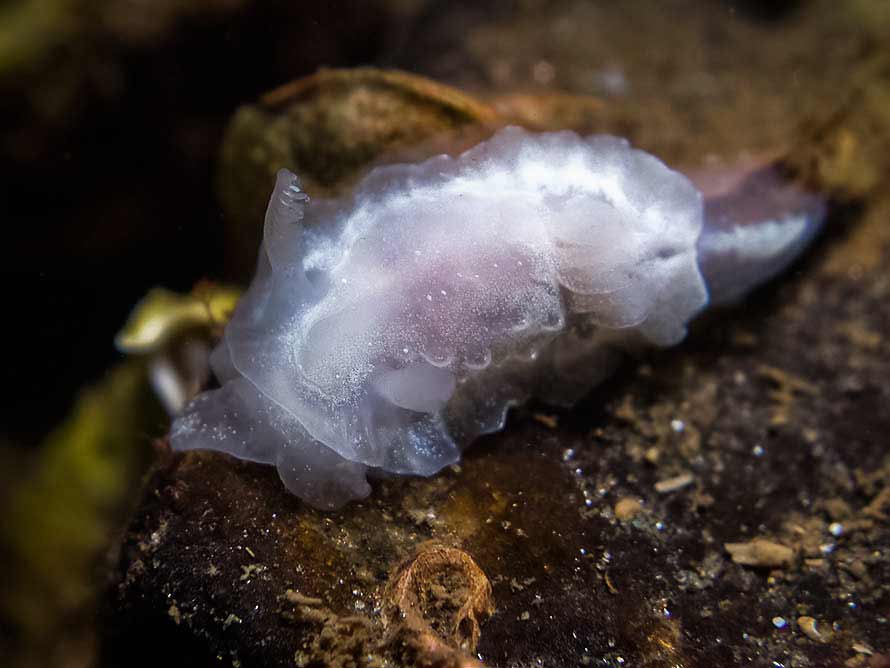 7 mm animal, one of a few among the gravel and small stones at 11 metres. Water temperature 9° C.