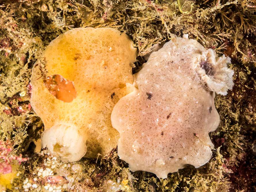 2 x 75 mm mating animals at 10 metres on the hull. Water temperature 11°C.