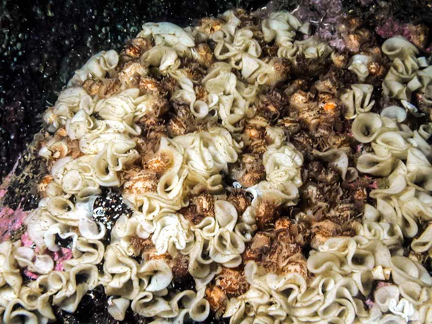 of animals with their spawn on the rocky reef and rocks on flat gravel and sand areas. Another mass spawning event.