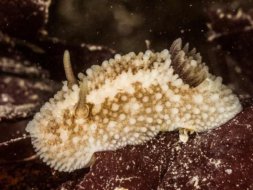 25 mm animal, one of several seen during the dive, at 14 metres. Water temperature 13° C.