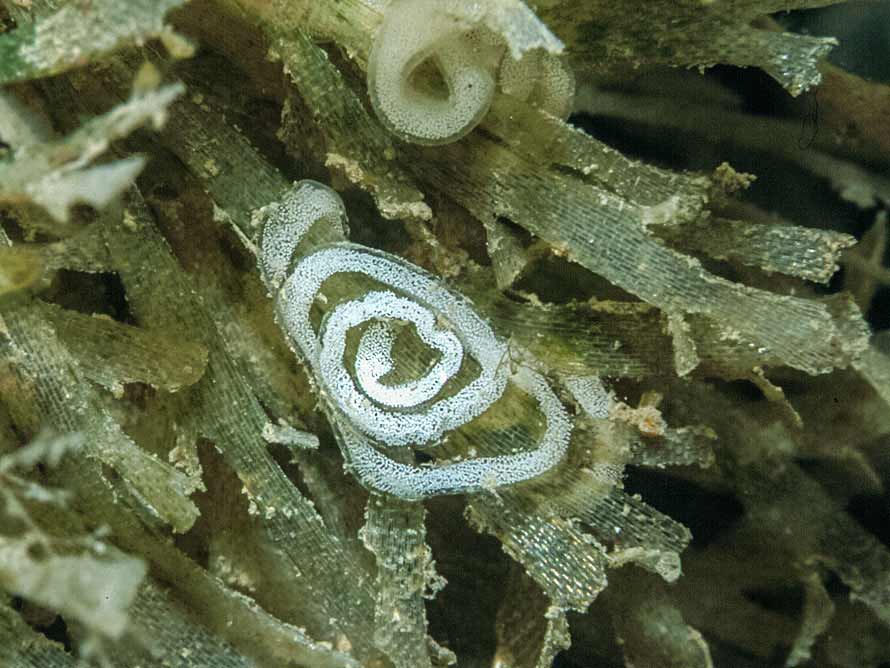 At 18 metres in 7° C water, spawn in the vicinity of several animals.