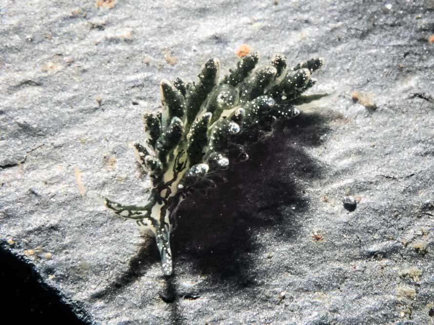 A 10mm long animal found at 7 metres on the face of a slate boulder in 10° C.