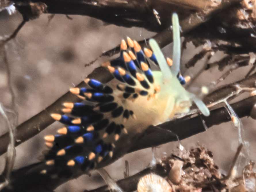 Found in numbers on hydroid along with a tiny scallop seadling